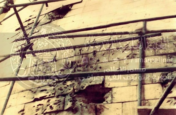 Geçtiğimiz yüzyılın seksenli yıllarının başında Baas rejimi, mezhepçi ve ırkçı saiklerle hareket ederek kubbe kuşağını tahrip etmiş, altın tacı indirmiş ve üzerinde Emirü’l-Müminîn Ali (aleyhisselâm) methine dair şiirlerin bulunduğu altın levhaları sökmüştür. Bu levhaların sökülme sebebi, üzerlerindeki kitabelerin Farsça ve Türkçe dillerinde yazılmış olmasıdır. Orijinal kitabelerin yerine parlak levhalar yerleştirilse de…