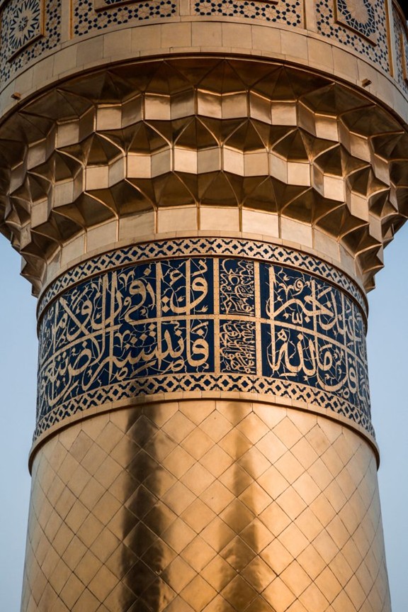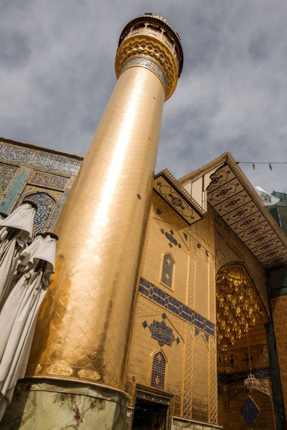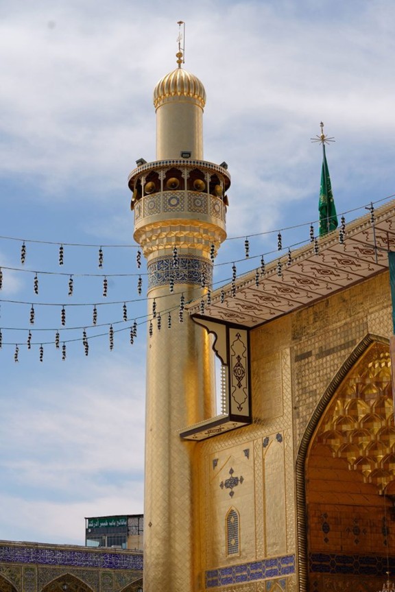 Müminlerin Önderi Hz. Ali’nin (aleyhisselam) mukaddes türbesinin güney minaresinin, eski ölçü ve boyutlarına sadık kalınarak gerçekleştirilen altın kaplama işlemleri Hicri 1440 (Miladi 2019) yılında tamamlanmış; bunun hemen akabinde ise kuzey minaresinin altınla kaplanması çalışmalarına başlanmıştır.